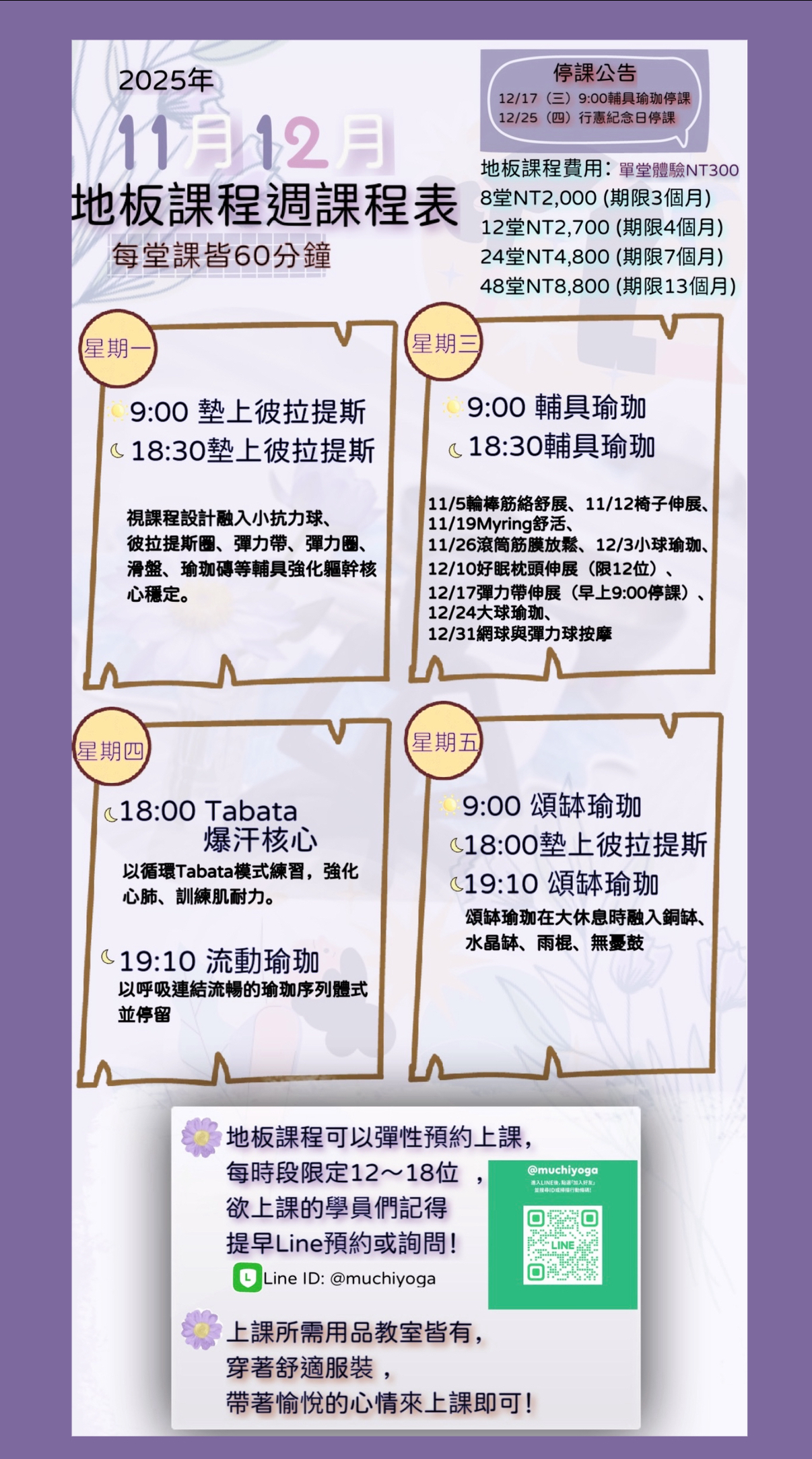 下半段紫色課表為11月12月地板系列團課表